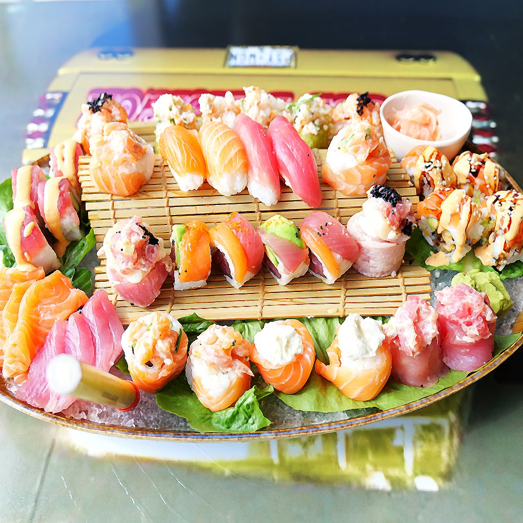 18 Sushis roll, 8 Sashimis, 8 Gunkans, 4 Nigiris