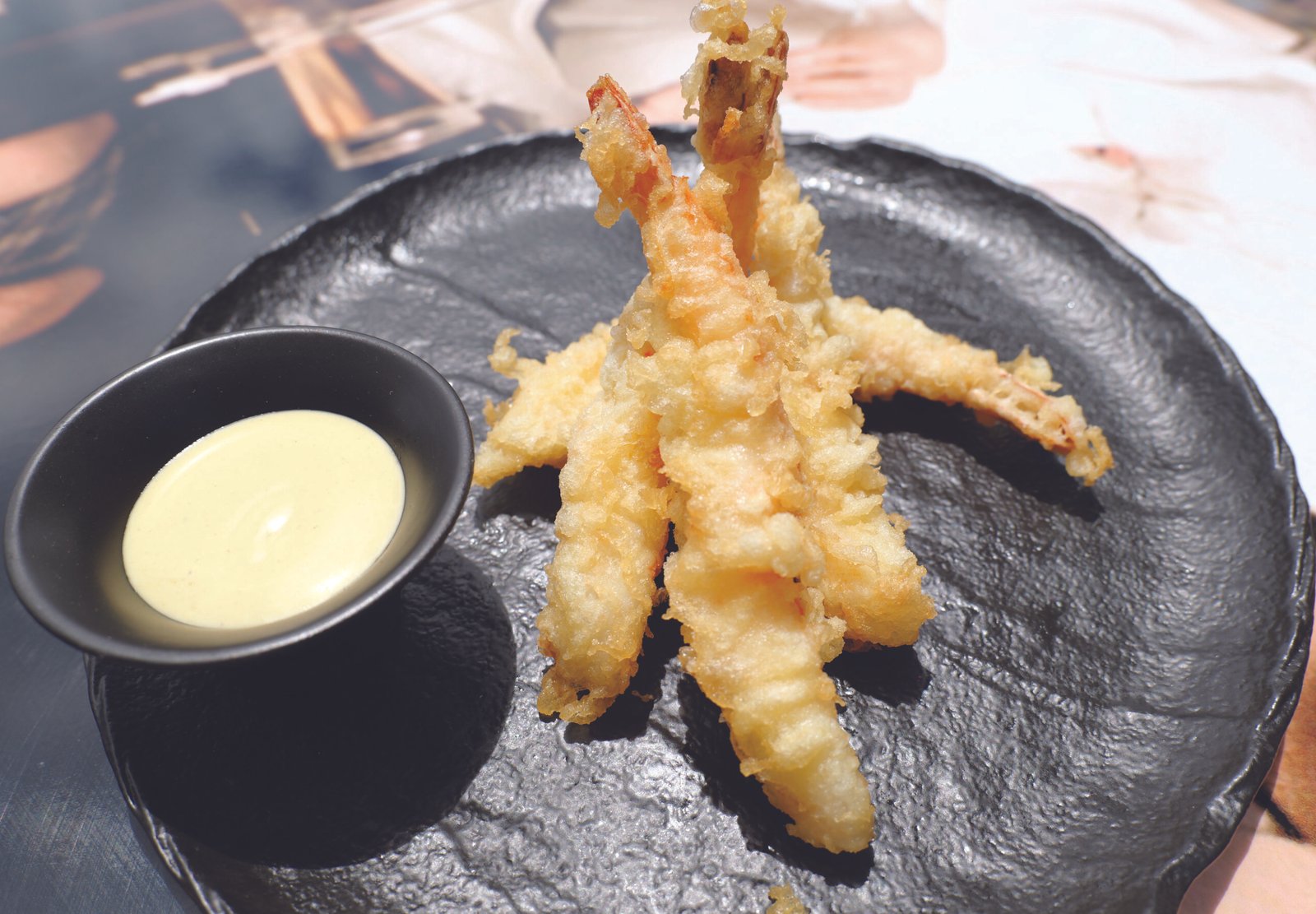 Shrimp tempura tiger or tempura zucchini flower, feta